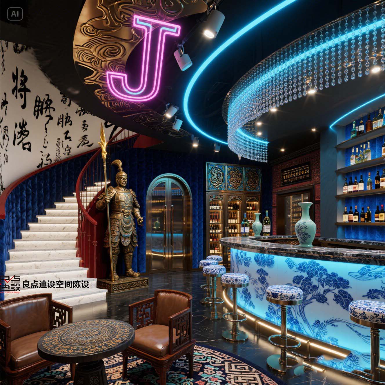 ??魔都新晉賽博國潮酒吧設計曝光!軟裝設計...